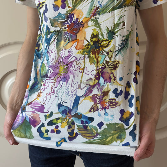 Balmain A/W 2010 Decarnin Floral Watercolor Distressed T-Shirt