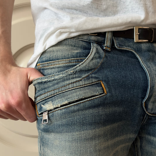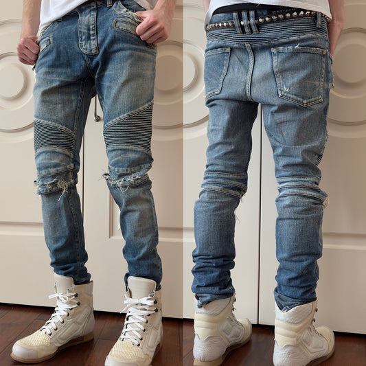 Balmain Distressed Mud Wash Biker Jeans