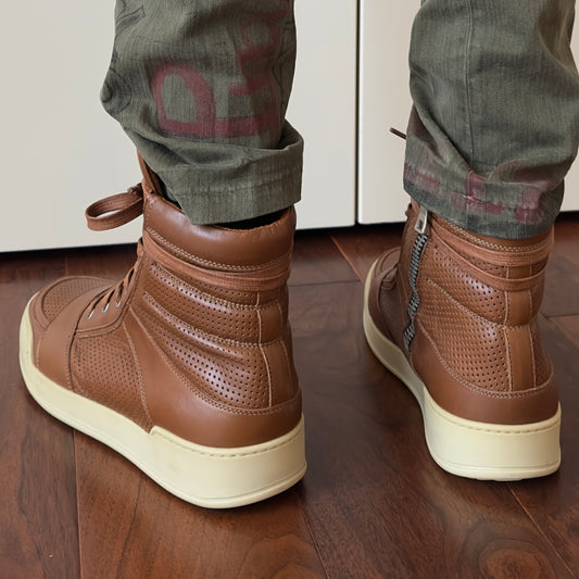 Balmain 2013 Brown Perforated Leather High-Top Sneakers