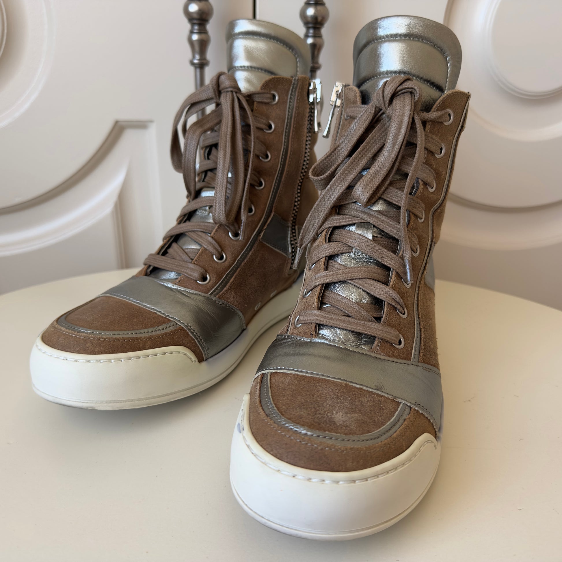 Balmain F/W 2013 High Top Brown & Silver Leather Sneakers